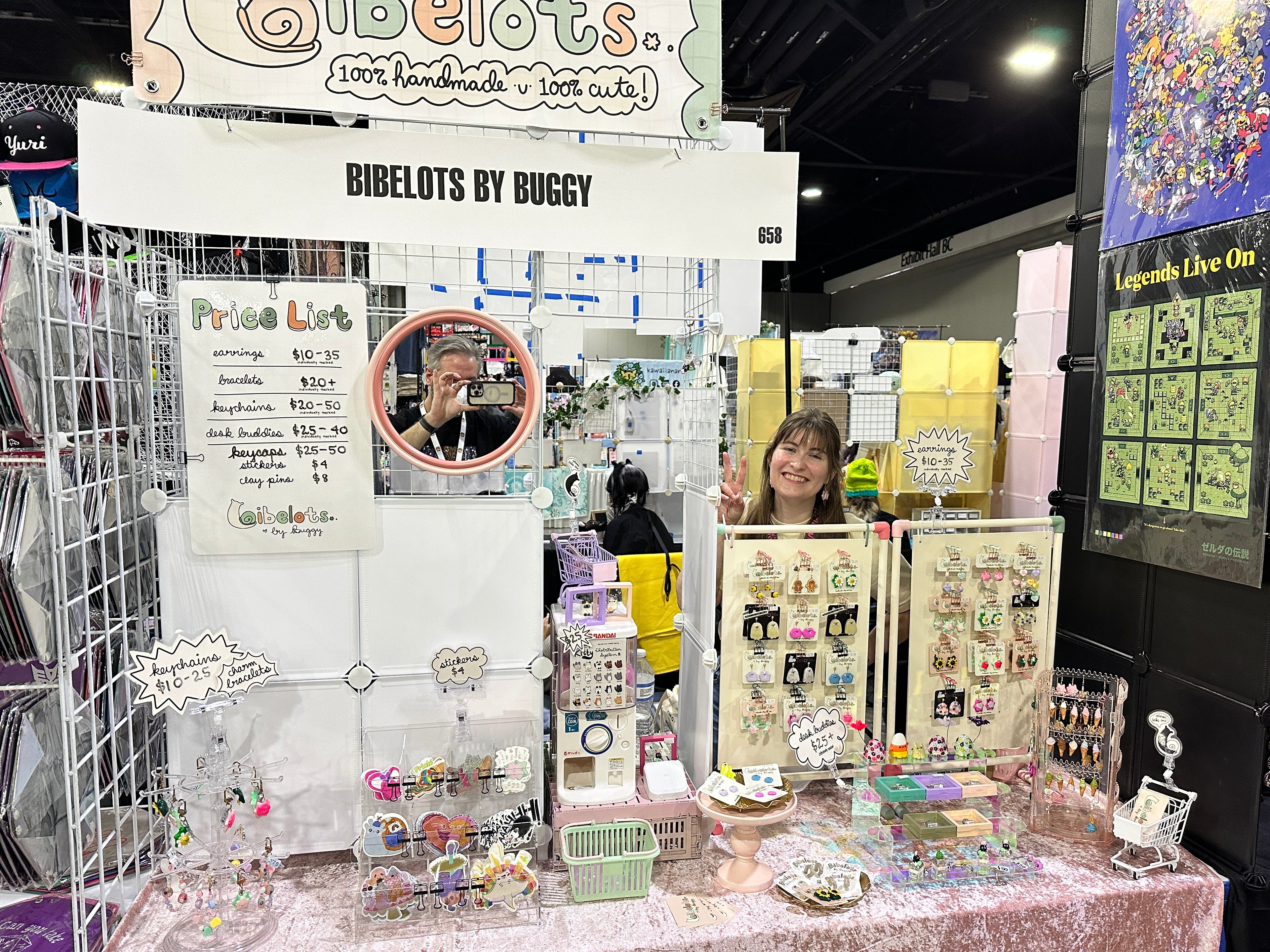 Operating completely from a fold-out table in my tiny studio apartment, Bibelots was created towards the end of 2022, as a way for me to reconnect with my inner artist. From there it has grown into my dream of sharing my art with the world! I make cute friends, colorful trinkets and playful jewelry and accessory pieces. Everything at Bibelots is crafted with love and sculpted by hand out of polymer clay, maybe with some glitter thrown in, and topped off with a resin coat to give them shine and durability to bring joy longer!
